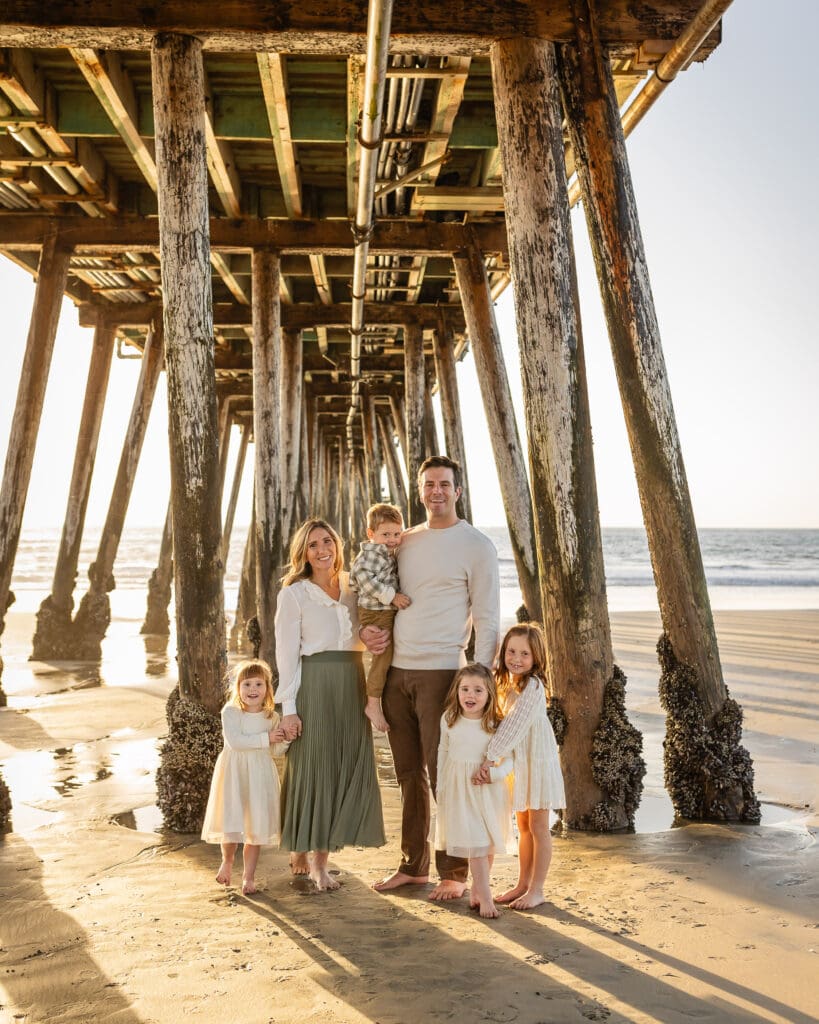 We begin beneath the pier for impactful and architectural portraits. This is a popular location for family portraits and sometimes we take turns with other photographers to grab our spot beneath the pier. Then we move a bit north to rock formations for added textures and variety. Parking can be challenging here, especially during a summer weekend so it’s important to allow extra time to park at this location.