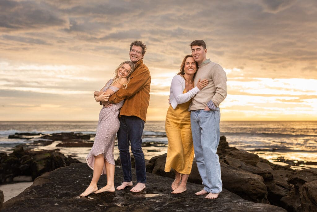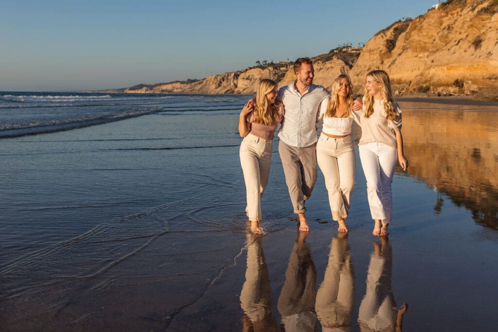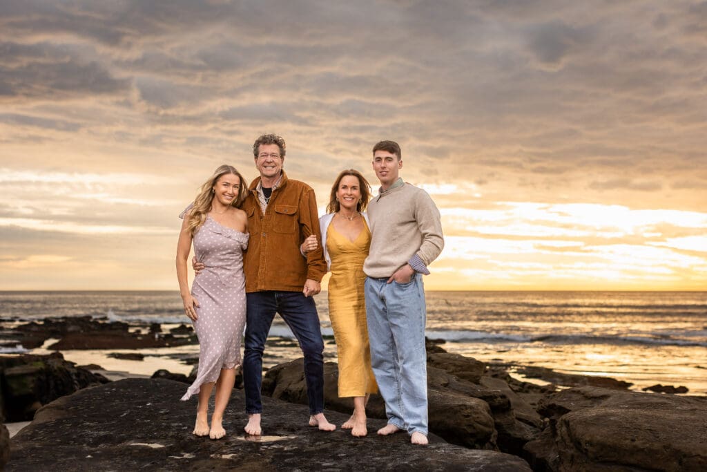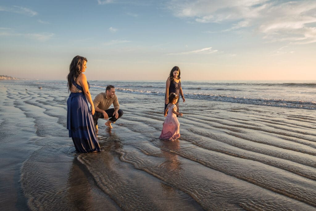 Selecting the perfect beach location need not be stressful. As San Diego’s Best Family Beach Photographer, I’ll set your mind at ease with my favorite suggestions. Each beach is perfect for early morning or late afternoon golden hour portrait sessions. On days when the skies are clear, my sessions will last about 15 minutes past sunset for the most beautiful, soft light. Week days are best for beach sessions—especially in summer—when the beaches are a bit less crowded. But I am able to create and edit a photo so the result looks like you’re the only family on the beach. Plus, I track the tides to ensure the beaches are fully accessible for your portraits. Enjoy the photos below or view full galleries here.